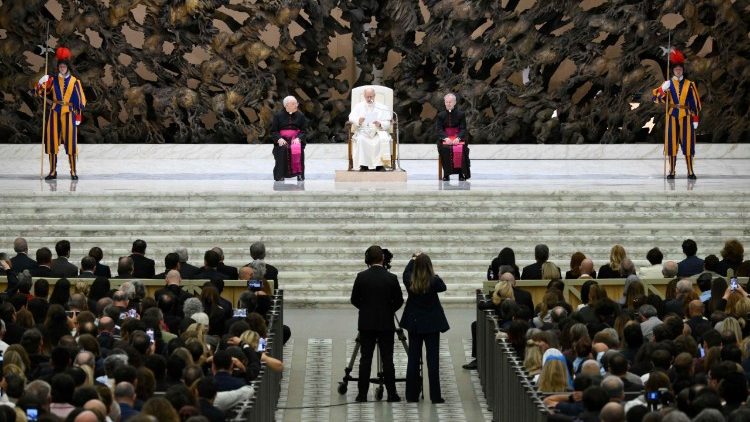 Permítanme entonces reiterar hoy la solidaridad de la Iglesia con los periodistas encarcelados por haber intentado contar la verdad, y por medio de estas palabras también pedir la liberación de los mismos. La Iglesia reconoce en estos testigos —pienso en aquellos que informan sobre la guerra incluso a costa de la vida— la valentía de quien defiende la dignidad, la justicia y el derecho de los pueblos a estar informados, porque sólo los pueblos informados pueden tomar decisiones con libertad. El sufrimiento de estos periodistas detenidos interpela la conciencia de las naciones y de la comunidad internacional, pidiéndonos a todos que custodiemos el bien precioso de la libertad de expresión y de prensa.